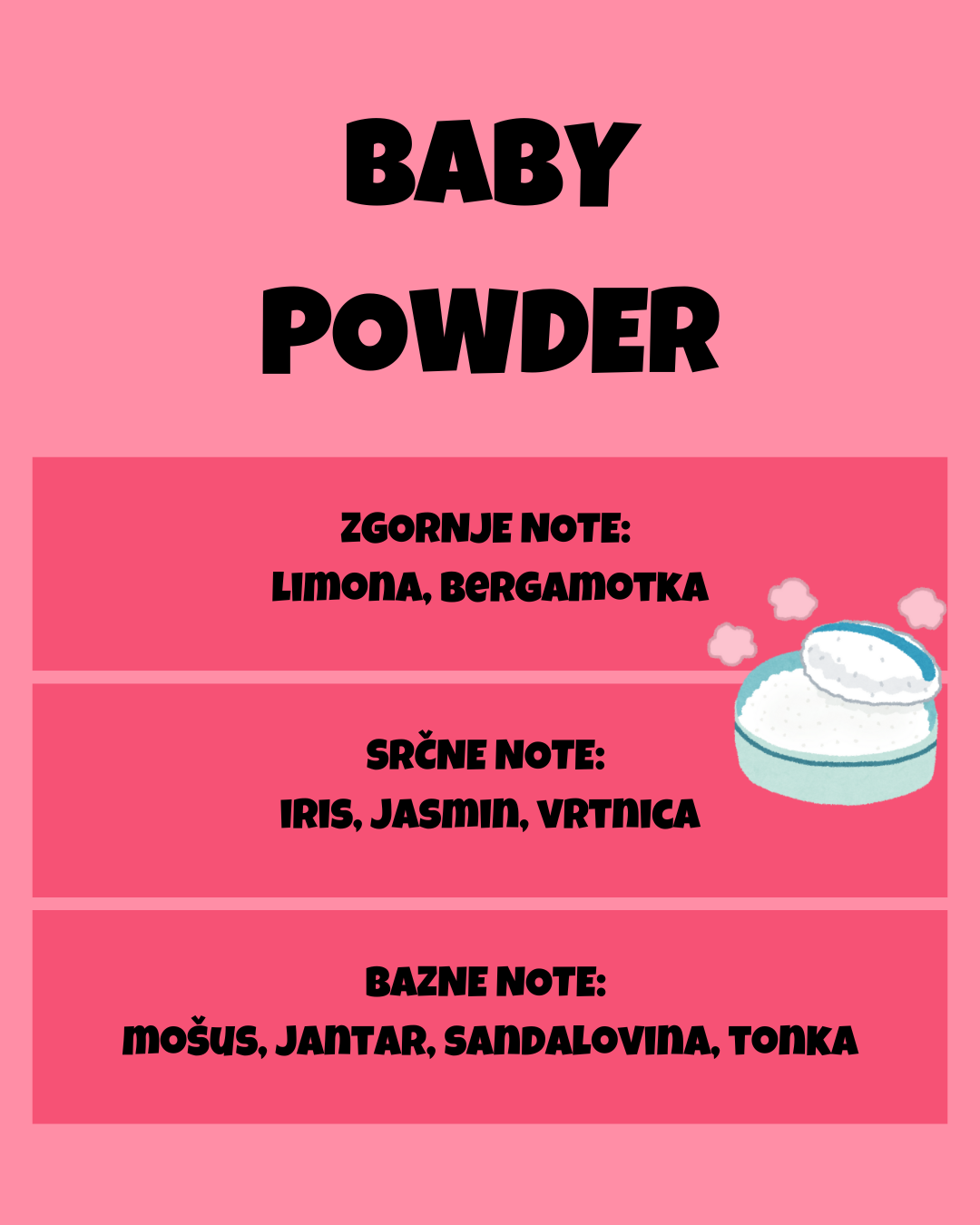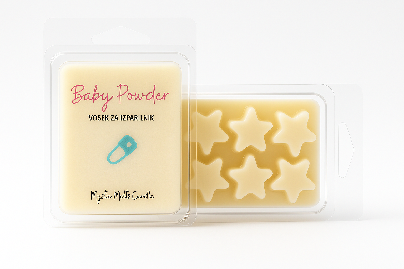 La cera per vaporizzatore Baby Powder offre un'esperienza profumata delicata e rilassante che inonda la stanza di purezza e calore. Le note di testa di limone fresco e bergamotto creano un'apertura rinfrescante che agisce come una leggera brezza di freschezza. Le note di cuore di fiori come iris, gelsomino e rosa aggiungono morbidezza ed eleganza, ricordando la purezza e la tenerezza della pelle del bambino. Le note di fondo rivelano muschio profondo, ambra calda, legno di sandalo cremoso e tonka dolce, conferendo alla fragranza un finale rilassante e duraturo. Baby Talco è perfetto per creare un'atmosfera domestica piacevole e rilassante.