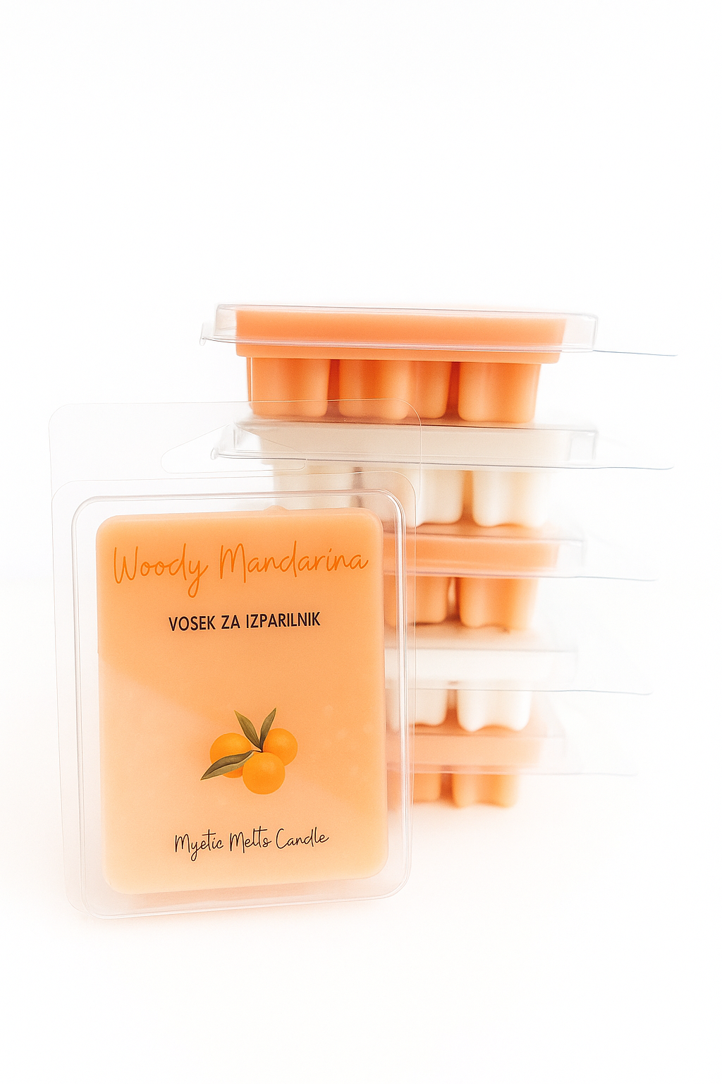 La cera per vaporizzatore Woody Mandarina è ricca e sofisticata, combina fragranze fresche, fruttate e legnose per creare una sensazione di lusso e calma, come se fossi in un rilassante rifugio termale. Le note di testa portano accordi dolci e agrumati di cioccolato, arancia, bergamotto e mandarino, che riempiono la stanza di un'atmosfera vivace e allegra. Le note di cuore portano il calore dell'ambra, la freschezza della lavanda, l'eleganza del giglio e la profondità del legno di guaiaco, creando una fragranza sofisticata e rilassante.